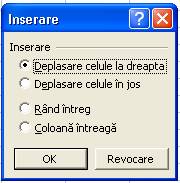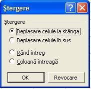 Decuparea celulelor din foaie - se selecteaza celulele Editare stergere se alege actiunea ce se va face cu celulele din jurul celor decupate (Fig. 9)