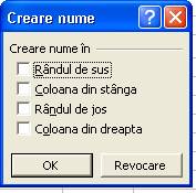 Se selecteaza celulele cu date si celulele cu etichetele dorite Inserare Nume Creare se alege pozitia unde se afla celulele cu etichete (Fig. 11)