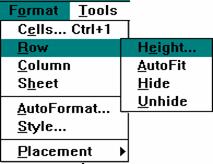Pentru aceste operatii se utilizeaza meniul Format, urmând traseul Column ; Weight respectiv Row ; Height (vezi fig. 1.19). În caseta Row height (vezi fig. 1.20), utilizatorul poate preciza dimensiunea dorita.