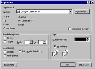 Se alege Fisier Imprimare/File Print (se afiseaza caseta de dialog Imprimare/Print