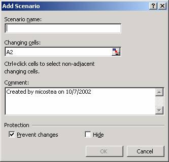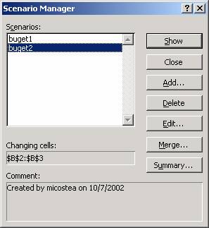 Nota: Pentru a pastra valorile originale pentru celulele care urmeaza a fi modificate, creaza un scenariu care utilizeaza valorile originale înainte de a crea un scenariu care sa modifice valorile.
