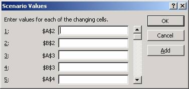 Executa click pe OK. Apare caseta Scenario Values.