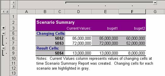 Alege Scenario summary sau Scenario PivotTable.