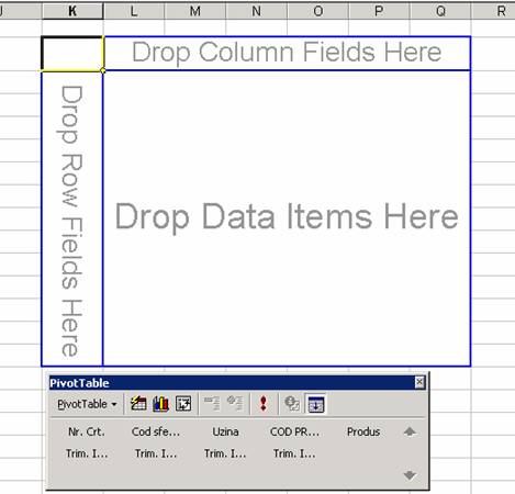 Bara de instrumente Pivot Table iti permite sa creezi macheta unui tabel pivot prin tragerea campurilor din bara de instrumente in zonele din tabelul pivot.