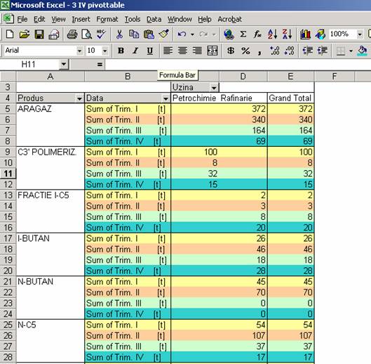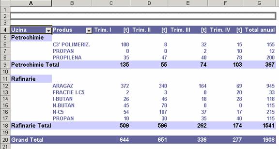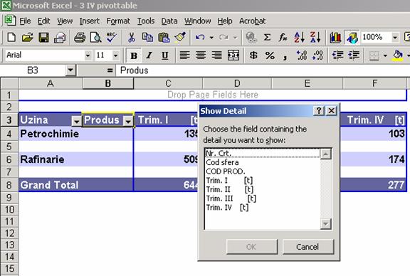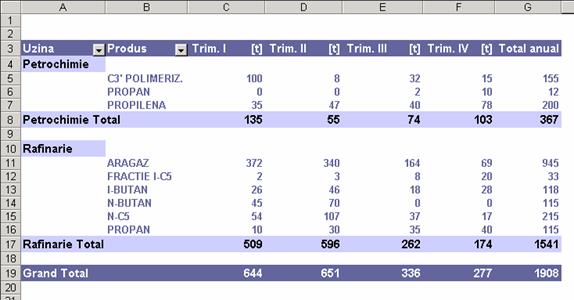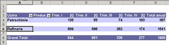 executarii unui dublu clic pe total Petrochimie trimestrul I