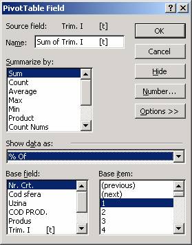 Efectuarea calculelor intr-un tabel pivot