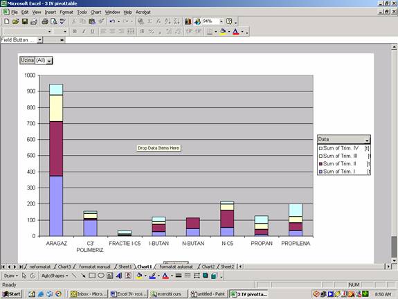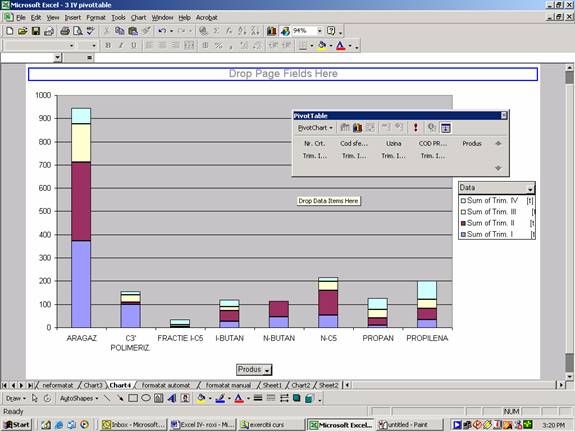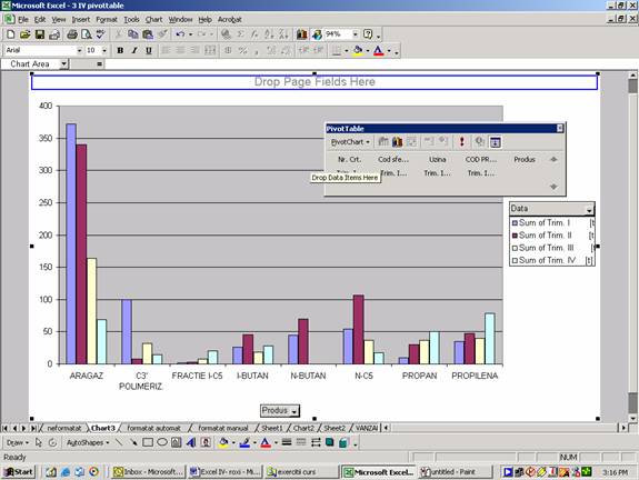 Executa secventa DataPivotTable and PivotChart Report (Raport tabel pivot si diagrama pivot).
