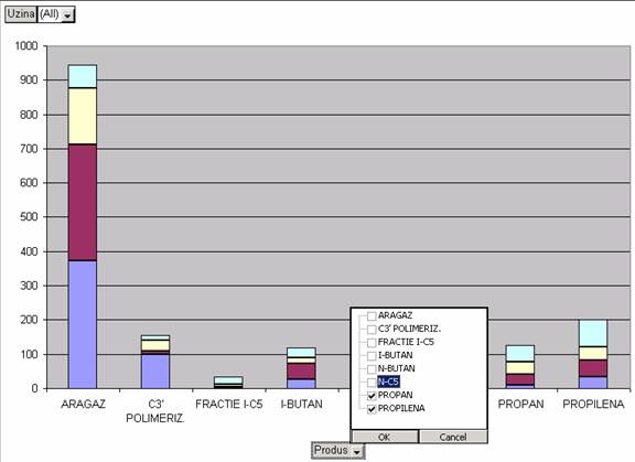 Executarea unui click pe butonul cu sageata de pe un camp dintr-o diagrama sau un tabel pivot afiseaza o lista derulanta din care poti selecta sau deselecta obiecte. Informatia va fi eliminata din sau adaugata la tabelul sau diagrama pivot.