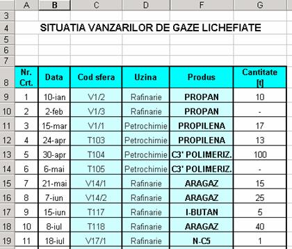 detalii. Excel va activa selectiile din lista (pentru a