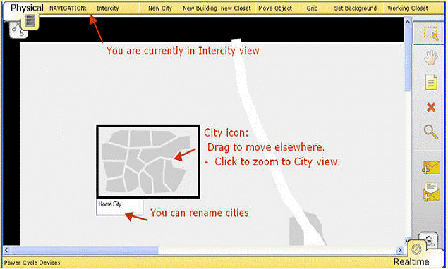 Cand intrati pentru prima data in modelul “Physical Workspace”, va aflati in nivelul Intercity (sau “harta”)