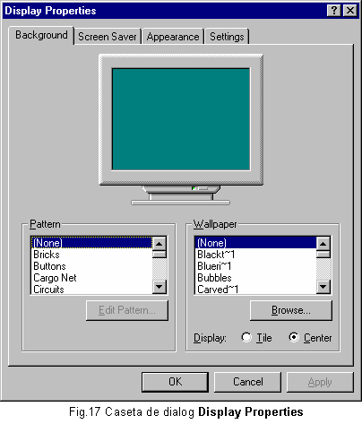 deschideti caseta de dialog Display Properties si selectati butonul Background;