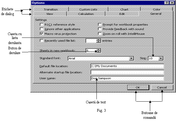 Optiune urmata de marcajul ... - Acest tip de optiune determina deschiderea pe ecran a unei casete de dialog care va va ruga sa specificati locul.