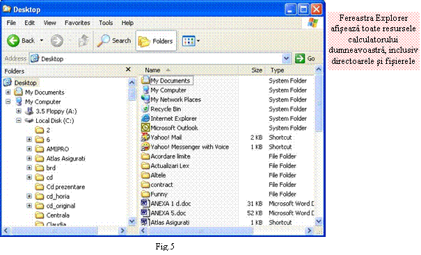 Lansarea in executie din ferestrele My Computer sau Explorer. Sunt ferestre folosite pentru gestionarea fisierelor program si a fisierelor document (vezi Fig. 5 si 6).