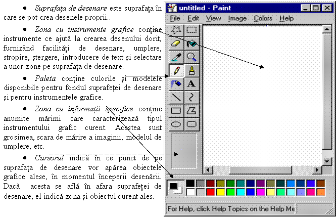o Culoarea de desenare (prim-plan) - stabileste culoarea de pictare si se obtine executand click pe butonul stanga mouse pe culoarea dorita din caseta de culori.