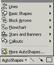 Exista sase categorii AutoShapes care pot fi apelate prin executarea unui clic pe butonul AutoShapes din bara de instrumente Drawing