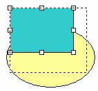 Asa cum se vede în imaginea anterioara obiectele afiseaza (în momentul când sunt selectate) doua (în cazul liniilor) sau opt (în cazul altor obiecte) puncte de manevra. Acestea ajuta la deplasarea si redimensionarea obiectelor desenate.