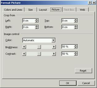n Picture (Imagine). Este activa doar daca obiectul selectat a fost o imagine. Zona Crop from permite stabilirea dimensiunii care va fi taiata pe cele patru laturi ale imaginii.
