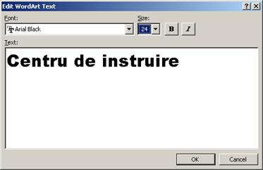 n Introdu textul în caseta de dialog Edit WordArt Text