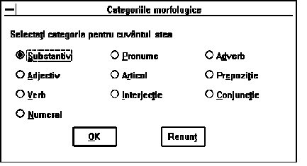 Articolele, numeralele si pronumele produc diferite forme iregulare de flexiuni. Fiecare element al multimilor mentionate se flexioneaza într-un mod special. Pentru ele indicati partea de vorbire respectiva si activati butonul "OK'' (vezi Figura 6).