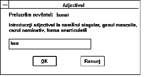 Convingându-va ca toate flexiunile sunt corecte, activati butonul "OK'' pentru a completa vocabularul, în caz contrar indicati butonul "Renunt''.