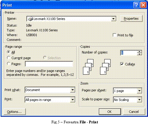Din butonul Options se pot stabili anumiti parametri ai imprimarii (Fig.6):