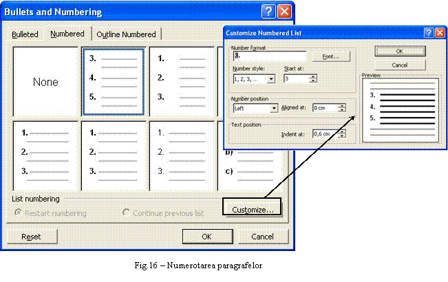 de text asupra careia se aplica parametrii stabiliti - Numbering.