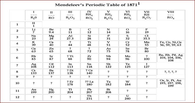 Mendeleev. Versiunea finala a acestuia, din 1871, a lasat spatii