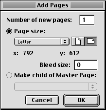 Choose Add Pages from the Document inspector menu. This opens the Add Pages dialog box