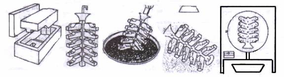 - realizarea formei-coji ceramice, prin imersarea asamblului de modele in vopsea si apoi in nisip ( 525b19f se depun 3 6 straturi);