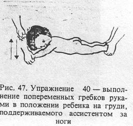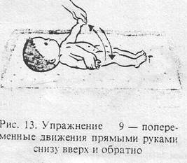 занятий по плаванию. При наличии неблагоприятных признаков, в частности отставания веса от средних данных, необходимо ограничивать нагрузку в дальнейших занятиях: уменьшать их продолжительность, сокращать количество повторений отдельных упражнении, не снижать температуру воды и т.д. Если и после таких ограничений отрицательные явления не исчезнут, следует сократить количество занятий в ванне до 2-3 раз в неделю. И только после полного исчезновения отрицательных явлений можно вновь продолжить постепенное повышение физических нагрузок и дальнейшее снижение температуры коды.