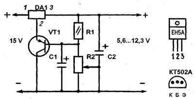 Радиоконструкт 17217f53r ;ор позволяет на базе специализированной микросхемы собрать стабилизированный однополярный источник питания напряжением 5,6в.12,3в и током нагрузки до 3А.