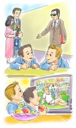Пока он говорил, ребят усадили в кресла и начали обвешивать пучками электрических датчиков. По окончанию процедуры они стали похоже на больших любопытных ежей.