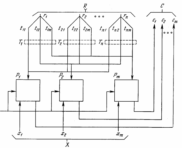 Каждый нейрон в слое сравнения (рис. 8.2) получает три двоичных входа (0 или I): (1) компонента хi X; (2) сигнал обратной связи Ri