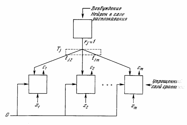 tij j в слое распознавания и нейроном i в слое сравнения.