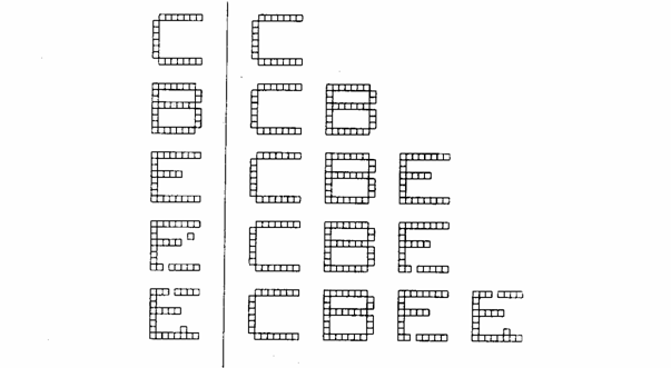 Далее предъявляется буква «В». Она также вызывает неуспешное окончание фазы поиска и распределение нового нейрона. Аналогичный процесс повторяется для буквы «Е». Затем слабо искаженная версия буквы «Е» подается на вход сети. Она достаточно точно соответствует запомненной букве «Е», чтобы выдержать проверку на сходство, поэтому используется для обучения сети. Отсутствующий пиксель в нижней ножке буквы «Е» устанавливает в 0 соответствующую компоненту вектора С, заставляя обучающий алгоритм установить этот вес запомненного образа в нуль, тем самым воспроизводя искажения в запомненном образе. Дополнительный и 646p1519g 079;олированный квадрат не изменяет запомненного образа, так как не соответствует единице в запомненном образе.