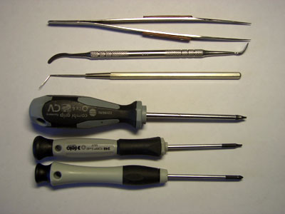 . Компоненты КПК, как правило, миниатюрны, поэтому работать с ними следует аккуратно, при хорошем освещении рабочего места. Разнообразные пинцеты и отвертки необходимы для работы с мелкими компонентами. Для пайки лучше всего пользоваться паяльной станцией со сменными насадками, поскольку после применения «дедушкиного паяльника для ведер» подопытному КПК доктор может уже не понадобиться.