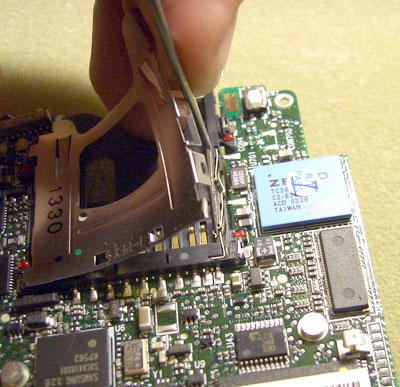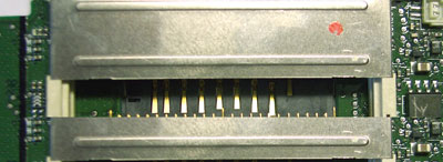 Гнездо для карт памяти также используется часто. Далеко не всегда после извлечения карты в него устанавливают заглушку, в результате в разъем могут попасть посторонние предметы, которые будут мешать вставить на место карту. Если карту удалось установить на место, но КПК ее «не видит», возможно, поврежден разъем (если удалось исключить повреждение самого носителя, проверить его работоспособность можно, вставив в другое устройство). При наличии яркого фонаря или настольной лампы можно, не открывая КПК, через щель разъема рассмотреть контакты и убедиться в наличии или отсутствии повреждений. Разъем для карт SD имеет свою специфику: в нем предусматривается внутренняя контактная группа, которая замыкается при полностью вставленной карте. В частности, уже упоминавшаяся модель HP iPAQ h2210 имеет весьма неудачную конструкцию: в контактную группу ее разъема набивается пыль.