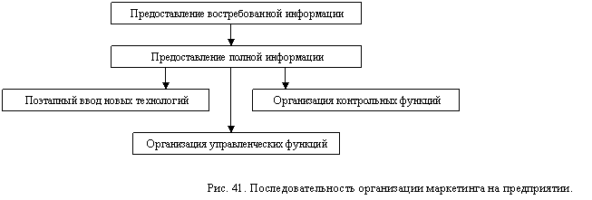 Функции маркетинга, в основном, распределены между структурными подразделениями предприятия. Иногда некоторые из них выполняются недостаточно качественно, но передача их в реорганизованную службу маркетинга может способствовать росту напряженности на предприятии, возникновению l 19319u2019t 2;онфронтации между новой службой и соответствующими подразделениями. В таких случаях может быть применено усиление маркетинговой поддержкой данных функций без перераспределения ответственности за их выполнение. Например, организацией филиалов может управлять сбытовой отдел, но прогноз по объемам сбыта и затратам для нескольких вариантов ему предоставляет маркетинговая служба.