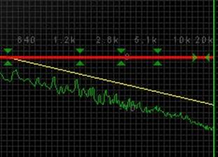 Обратите внимание на "рисунок" спектра, это изображение - закон которому подчиняются практически все коммерческие . Песня, используемая в этом случае была "Hate to Lose Your Loving" исполняемая Little Feat, но если Вы имеете Озон, анализировать несколько компакт-дисков, и Вы будете вероятно поражены тем, как их частоты следуют за тем же самым наклоном.