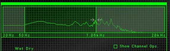 разделен на четыре частотные полосы. Вы можете устанавливать диапазонов произвольно, используя вертикальные линии на спектре модуля.