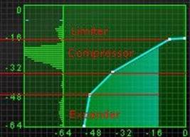 Секция Модуля динамического расширения (Expander) работает в самом низу, по уровню сигнала - его сигналы НИЖЕ его порога (в противоположность компрессору и , которые работают на сигналах выше их порогов)