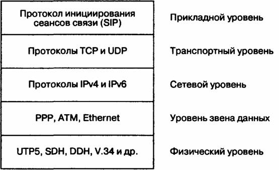 Рис. 7.1 Место протокола SIP в стеке протоколов TCP/IP