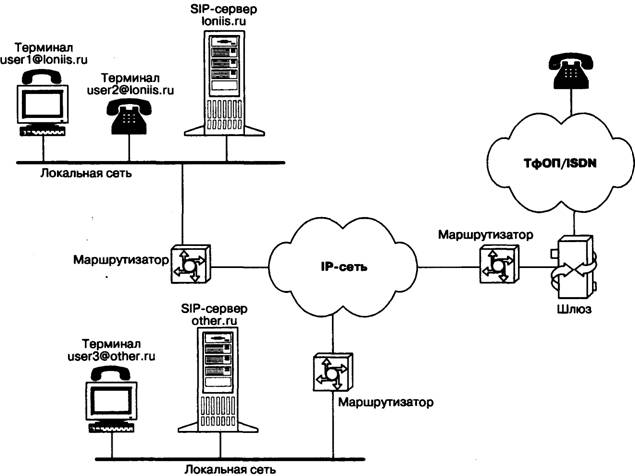 Рис. 7.3 Пример построения сети SIP