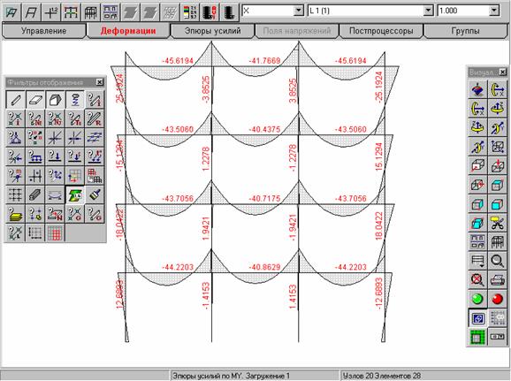 выполняется указанием курсора на "закладки" с наименованием разделов. Функции и режимы инструментальных панелей пре- и постпроцессора описаны в соответствующих разделах.