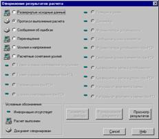 В тех случаях, когда для выполнения операции требуются дополнительные данные или установки, на экран выводится соответствующее диалоговое окно. Диалоговые окна включают различные элементы управления - таблицы, кнопки, поля ввода, списки и т.п. Ввод, удаление или изменение данных выполняется с клавиатуры. Если выход из диалогового окна выполняется нажатием кнопки ОК, то все выбранные установки запоминаются. Если для выхода использована кнопка Cancel (Отмена), то новые установки не сохраняются и при работе будут использоваться выбранные ранее или принимаемые по умолчанию.