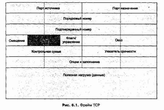 Основные функции прото 414e49e кола TCP аналогичны функциям Транспортами уровня модели OSI. Он должен отслеживать запросы на установление сеансов связи, устанавливать сеансы с другими TCP-узлами, передавать и принимать данные, а также закрывать коммуникационные сеансы. Фрейм 1Я содержит заголовок и полезную нагрузку (рис. 6.1) и называется TCP