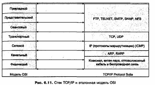 Эквивалентом Сетевого уровня в стеке TCP/IP является прото 414e49e кол IP. Следующим уровнем совместимости служит Транспортный уровень, на этом уровне могут работать оба прото 414e49e кола - TCP UDP OSI представляются прикладными прото 414e49e колами TCP/IP. Например, прото 414e49e кол Telnet функционирует на уровне, эквивалентном Сеансовому, а прото 414e49e колы SMTP FTP OSI