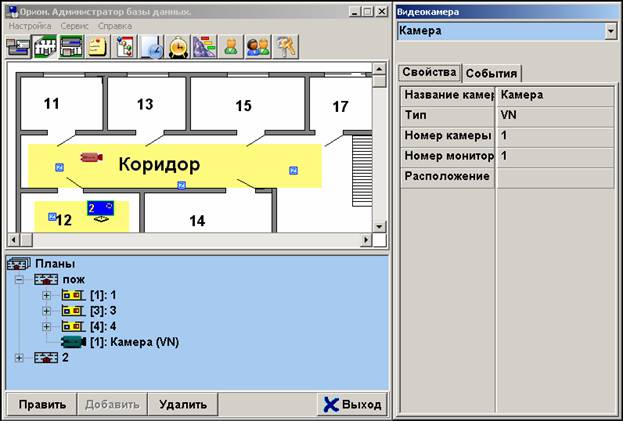 детектора» (Детектор: «Камера №», : « №»).