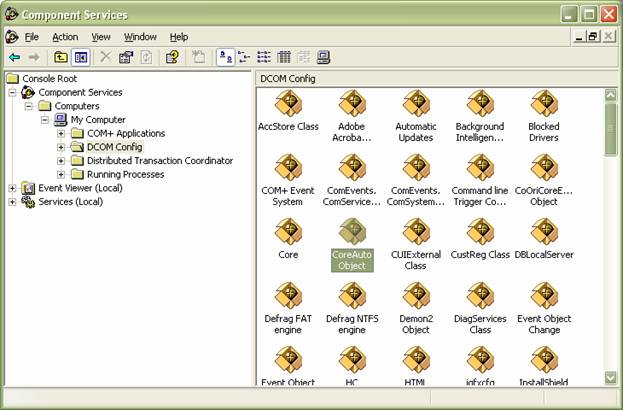 Console Root -> Component Services -> Computers -> My Computer -> DCOM config -> CoreAuto Object.