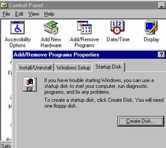 Settings/Control Panel/Add-remove programs/Start up disk/create disck/introduc